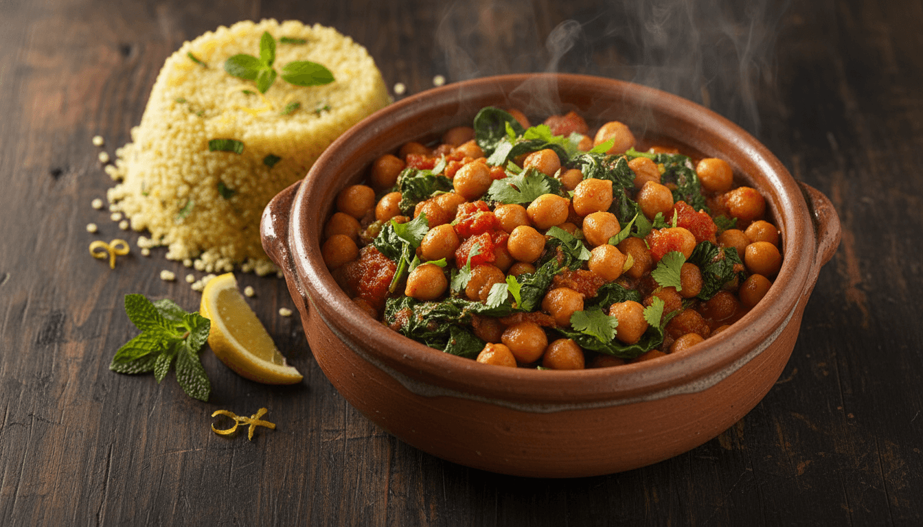 Moroccan Magic: Spiced Chickpea & Spinach Tagine with Lemon-Mint Couscous