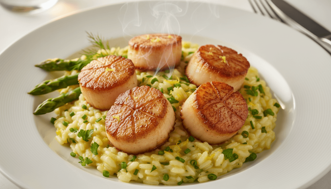 Seaside Serenity: Pan-Seared Scallops with Creamy Lemon-Herb Risotto